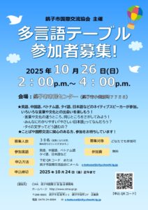 申 込:下記のフォームまたは銚子市国際交流協会(下記連絡先)